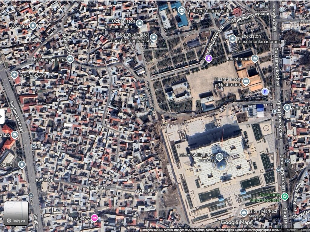 Ташкент, зона вокруг комплекса Хазрат-Имам в центре сохранившегося Старого Города (скриншот Google Earth от 25 Сентября 2017 © Maxar Technologies)